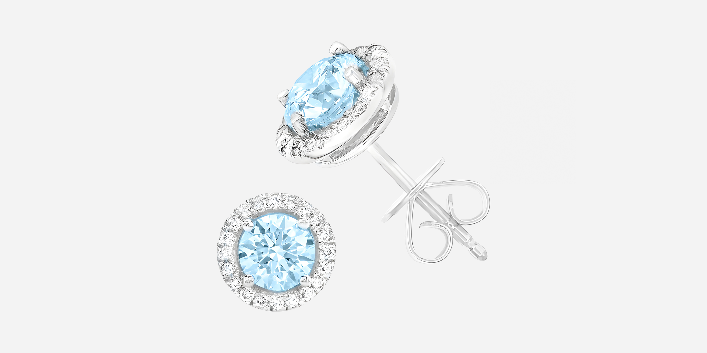 Aquamarine Halo Stud - White Gold