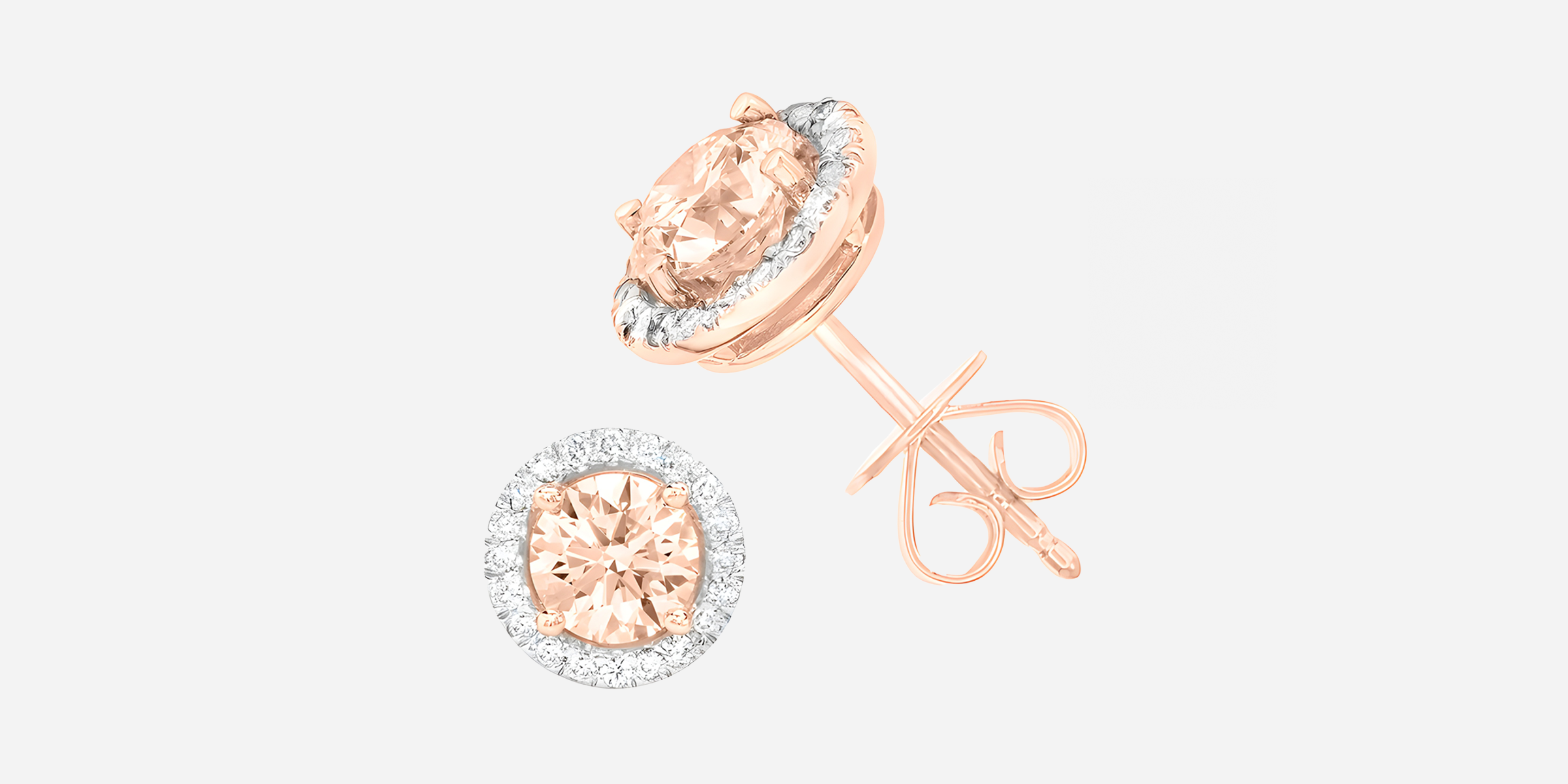 Morganite Halo Stud - Rose Gold